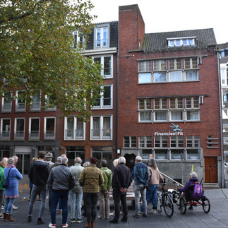 De rondleiding startte bij Mariënburg 92, het voormalige gebouw van de Kamer van Koophandel dat in 1932 werd ontworpen door Estourgie. Daarna verkenden we op de fiets andere toonaangevende gebouwen van Estourgie in Nijmegen.