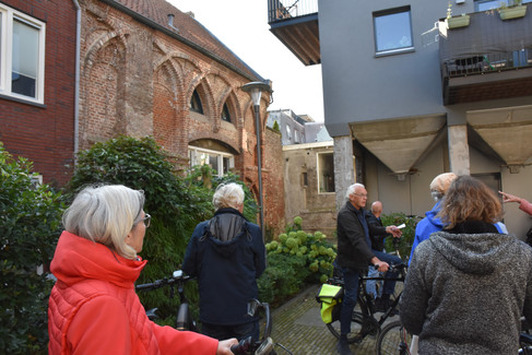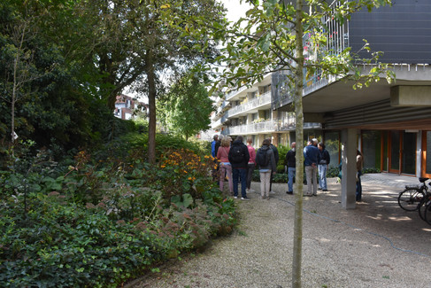 Zoals in Amsterdam de begijnhofjes wereldberoemd zijn kent Nijmegen ook vele bijzondere plekken in de binnenstad en daarbuiten. De fietstocht startte bij de Hezelpoort, van waaruit we zigzaggend door de binnenstad verborgen plekken verkenden. Daarnaast bezochten we het stationsgebied, een mooi binnenterrein van een project van Mecanoo in Hazenkamp en de Javastraat in Nijmegen Oost, waar een bijzonder bosje aansluit op een prachtige privétuin in Engelse sfeer.